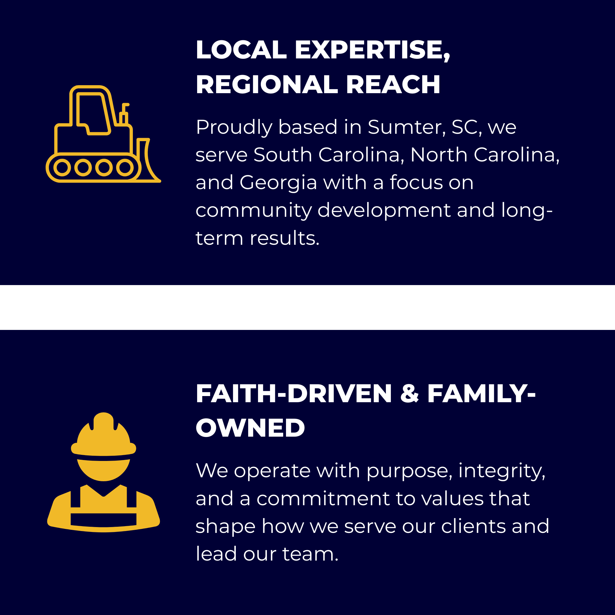 We proudly serve South Carolina, North Carolina, and Georgia, offering complete construction solutions for commercial, municipal, and residential projects.